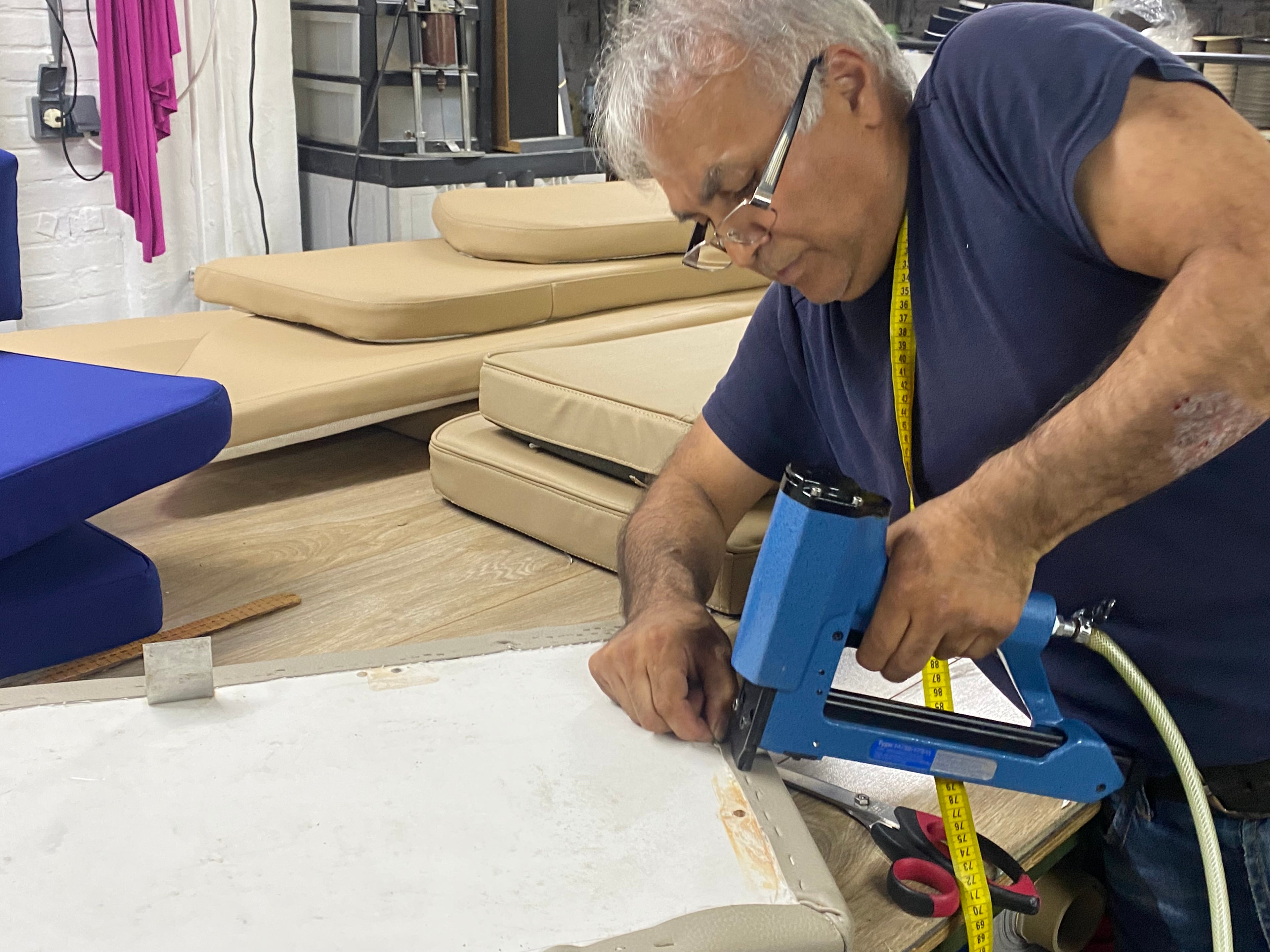 Na het schuim op maat snijden is de volgende stap het stofferen van bootkussens op maat. Met zorgvuldig geselecteerde stoffen en materialen zorgen wij voor comfortabele en duurzame bekleding van jouw bootkussens. Onze stoffeerders hebben oog voor detail en streven naar een perfecte afwerking. Of je nu nieuwe kussens wilt laten stofferen of bestaande kussens een frisse look wilt geven, wij staan voor je klaar. Neem contact met ons op en ontdek hoe we jouw bootkussens kunnen transformeren tot ware eyecatchers op het water! ⚓️🧵💺